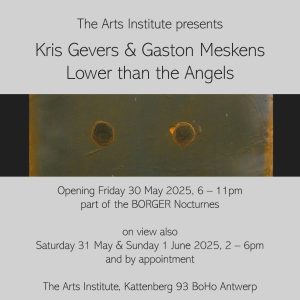 OpeningFriday 30 May 2025, 6 – 11pm on view alsoSaturday 31 May 2025, 2 – 6pmSunday 1 June 2025, 2 – 6pmand by appointment The Arts InstituteKattenberg 93 BoHo Antwerp Part of BORGER 2025